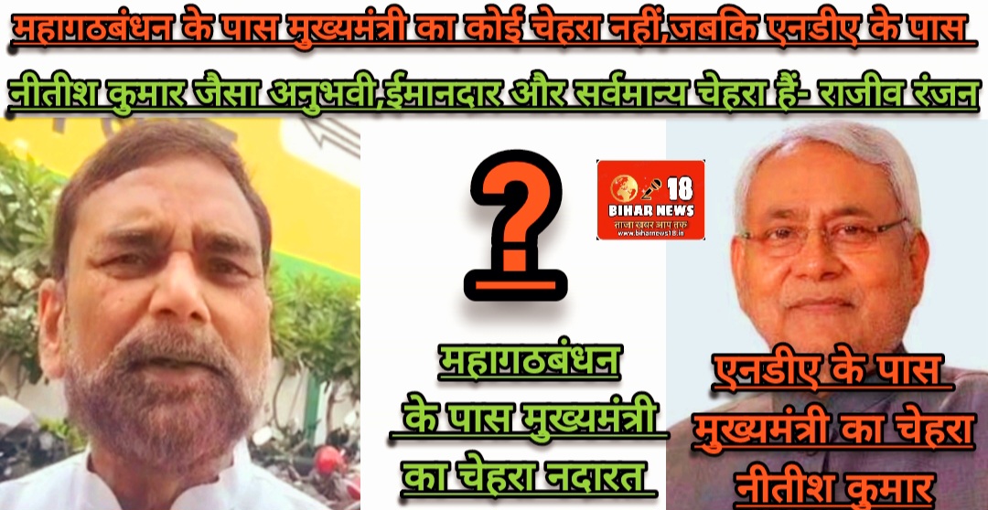 *महागठबंधन के पास मुख्यमंत्री का कोई चेहरा नहीं,जबकि एनडीए के पास नीतीश कुमार जैसा अनुभवी,ईमानदार और सर्वमान्य चेहरा हैं-राजीव रंजन प्रसाद*