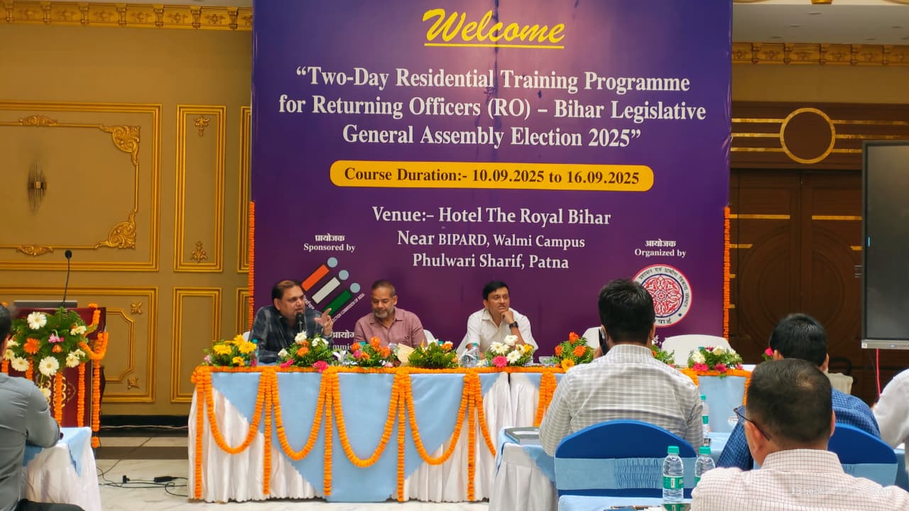 विजय सिंह /पटना/14 सितम्बर, 2025 :: बिहार विधानसभा आम निर्वाचन, 2025 की तैयारियों को सुदृढ़ एवं सुव्यवस्थित बनाने की दिशा में मुख्य निर्वाचन पदाधिकारी, बिहार श्री विनोद सिंह गुंजियाल के मार्गदर्शन में निर्वाची पदाधिकारियों का दो दिवसीय प्रशिक्षण कार्यक्रम का दूसरा चरण शनिवार को पटना स्थित होटल रॉयल बिहार में संपन्न हुआ। प्रशिक्षण में 70 निर्वाची पदाधिकारियों ने सहभागिता की।