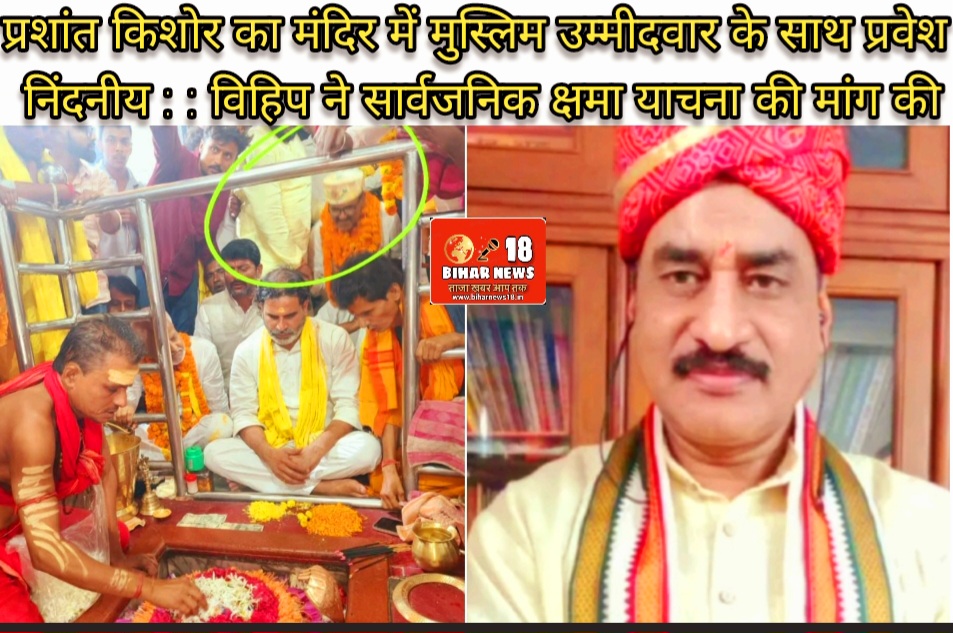 *प्रशांत किशोर का मंदिर में मुस्लिम उम्मीदवार के साथ प्रवेश निंदनीय : विहिप ने सार्वजनिक क्षमा याचना की मांग की*