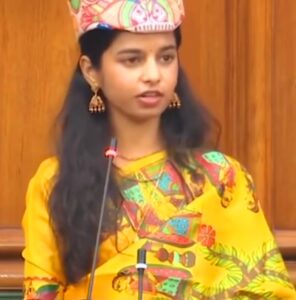 रविन्द्र कुमार,संपादक/ पटना/ 01 दिसंबर 2025 :: बिहार की सबसे युवा विधायक और सुप्रसिद्ध लोकगायिका मैथिली ठाकुर ने विधानसभा के 18वें सत्र के प्रथम दिन मधुबनी पेंटिंग वाली पारंपरिक पीली साड़ी और मैथिली परंपरा की पाग पहनकर भव्य आगाज किया।