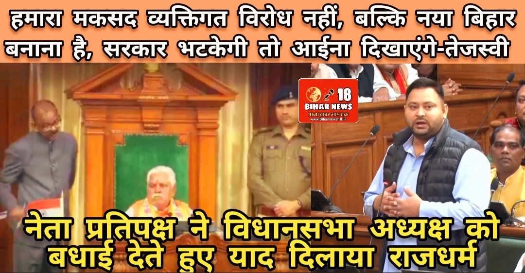 नेता प्रतिपक्ष ने दो टूक कहा कि विपक्ष सरकार का ही अंग होता है। हमारा किसी से व्यक्तिगत विद्वेष या दुश्मनी नहीं है। लेकिन, अगर सरकार जनहित से भटकेगी या कोई गलती करेगी, तो विपक्ष उसे आईना दिखाने का काम पूरी मजबूती से करेगा। श्री यादव ने सदन में अपने संकल्प को दोहराया कि हमारा एक ही उद्देश्य है— नया बिहार बनाना। ऐसा बिहार जो बेरोजगारी, पलायन और गरीबी से मुक्त हो।