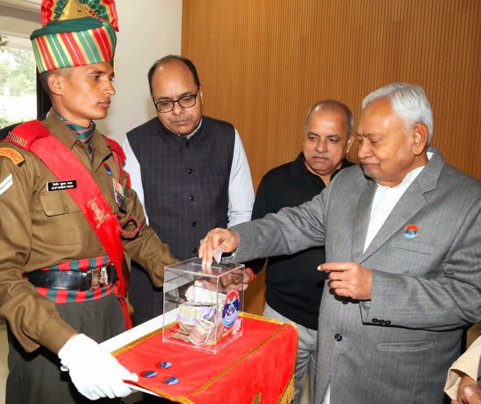 *सशस्त्र सेना झंडा दिवस पर मुख्यमंत्री नीतीश कुमार को फ्लैग प्रदर्शन, सैनिकों के सम्मान में किया अंशदान*