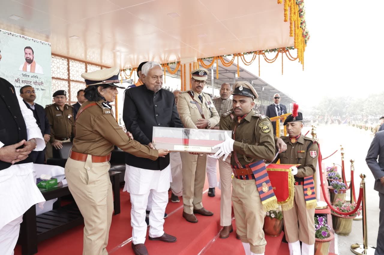 इस अवसर पर नीतीश कुमार ने अंकित कुमार को पिस्टल और बैटल से सम्मानित किया गया। मुख्यमंत्री ने रूपेश कुमार को तलवार दी और बेस्ट परेड कमांडर का अवॉर्ड मीना कुमारी को दिया.