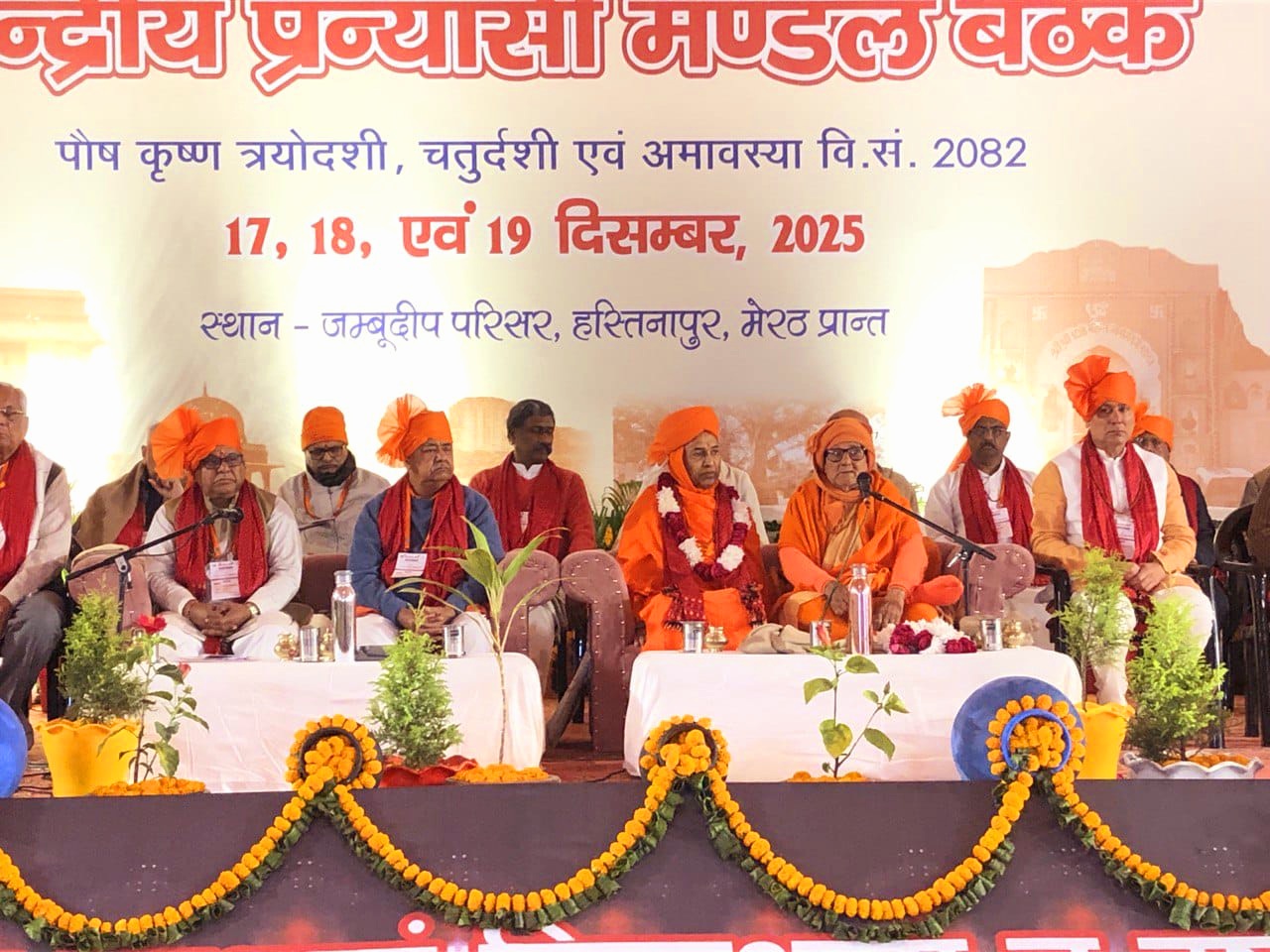 बैठक के लिए हस्तिनापुर का दिगंबर जैन मंदिर (जम्बूद्वीप) परिसर पूरी तरह भगवामय हो गया है। देश-विदेश से आए प्रन्यासियों का ढोल-नगाड़ों और पुष्प वर्षा के साथ स्वागत किया गया। मंच पर चंपत राय (महामंत्री, राम जन्मभूमि तीर्थ क्षेत्र), आलोक कुमार (केंद्रीय अध्यक्ष), और मिलिंद परांडे (संगठन मंत्री) सहित अनेक वरिष्ठ पदाधिकारी उपस्थित रहे।