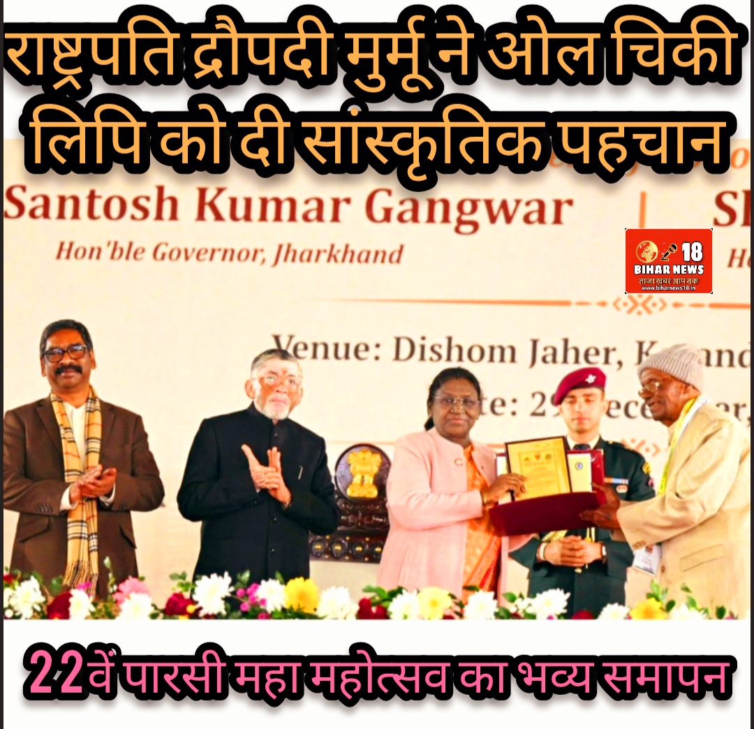 रविन्द्र कुमार, संपादक /जमशेदपुर( झारखंड)/ 29 दिसंबर 2025 :: झारखंड के जमशेदपुर में रविवार को 22वें पारसी महा एवं ओल चिकी शताब्दी समारोह का समापन राष्ट्रपति श्रीमती द्रौपदी मुर्मू की गरिमामयी उपस्थिति में हुआ।