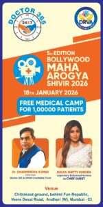 अखिलेश कुमार /मुंबई/ 12 जनवरी 2026 :: स्वास्थ्य सेवा के क्षेत्र में अग्रणी संस्था डॉक्टर 365 और डीआरवीए चैरिटेबल ट्रस्ट आगामी 18 जनवरी 2026 को मुंबई के अंधेरी स्थित चित्रकूट ग्राउंड में ‘5वें बॉलीवुड महा आरोग्य शिविर’ का भव्य आयोजन करने जा रहे हैं। सुबह 8 बजे से शाम 5 बजे तक चलने वाले इस मेगा कैंप में बॉलीवुड अभिनेत्री शिल्पा शेट्टी और अभिनेता तुषार कपूर मुख्य अतिथि के रूप में शिरकत करेंगे।