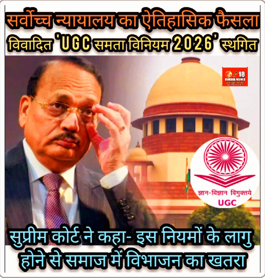 रविन्द्र कुमार, संपादक /नई दिल्ली / 29 जनवरी 2026 :: उच्चतम न्यायालय ने आज एक युगांतकारी निर्णय लेते हुए विश्वविद्यालय अनुदान आयोग (UGC) के विवादित ‘समता विनियम 2026’ (Promotion of Equity Regulations, 2026) को फिलहाल स्थगित कर दिया है।