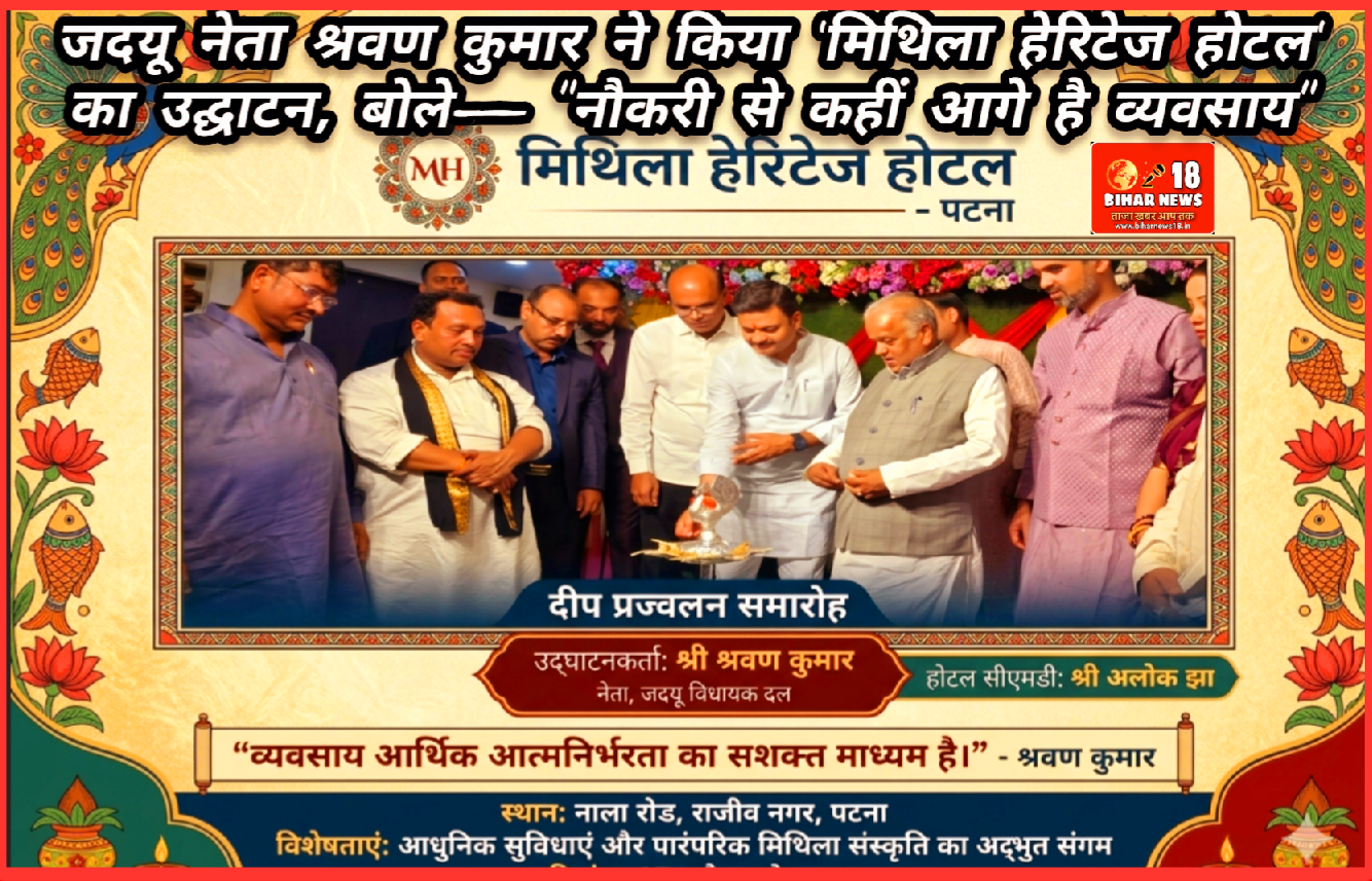 #PatnaNews #MithilaHeritageHotel #BiharTourism #SelfReliance #ShravanKumar #JDU #BiharEntrepreneur #HospitalityIndia #MithilaCulture #EmploymentGeneration #PatnaUpdates #सूचनाएवंजनसंपर्कविभागबिहार
