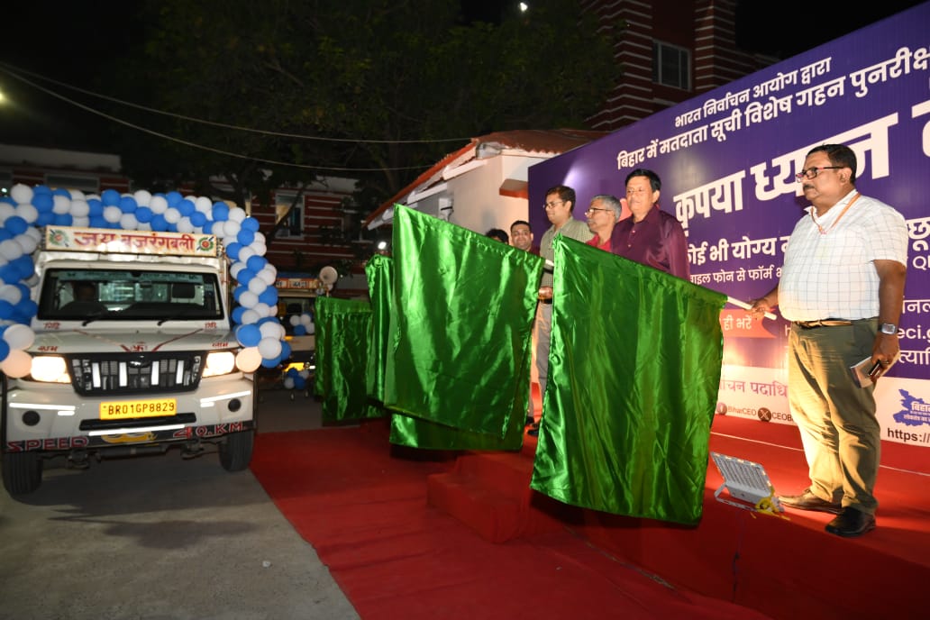 इसी क्रम में मंगलवार को राजधानी पटना के नगरीय क्षेत्रों में जन-जागरूकता बढ़ाने के उद्देश्य से मोबाइल जागरूकता रथों को रवाना किया गया। इन रथों में मतदाताओं को गणना प्रपत्र की जानकारी देने के साथ-साथ गणना प्रपत्र भी उपलब्ध कराए जा रहे हैं, ताकि आम नागरिक इन्हें मौके पर ही प्राप्त कर भर सकें।